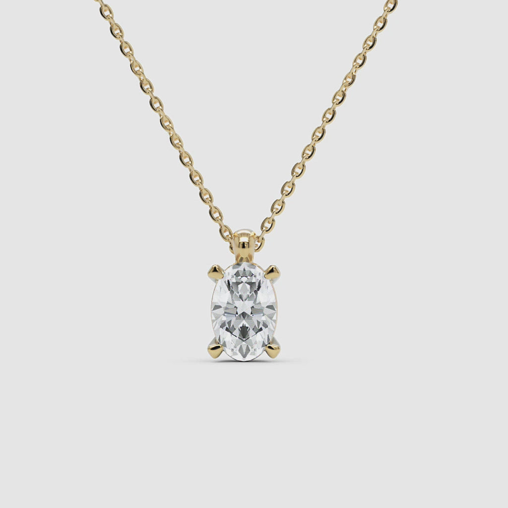 Timeless and elegant, this Oval Solitaire Diamond Pendant Necklace boasts a beautifully cut oval diamond hand-set in solid 14k gold. Its classic design exudes understated luxury, making it the perfect piece for effortless everyday wear or special occasions alike.
