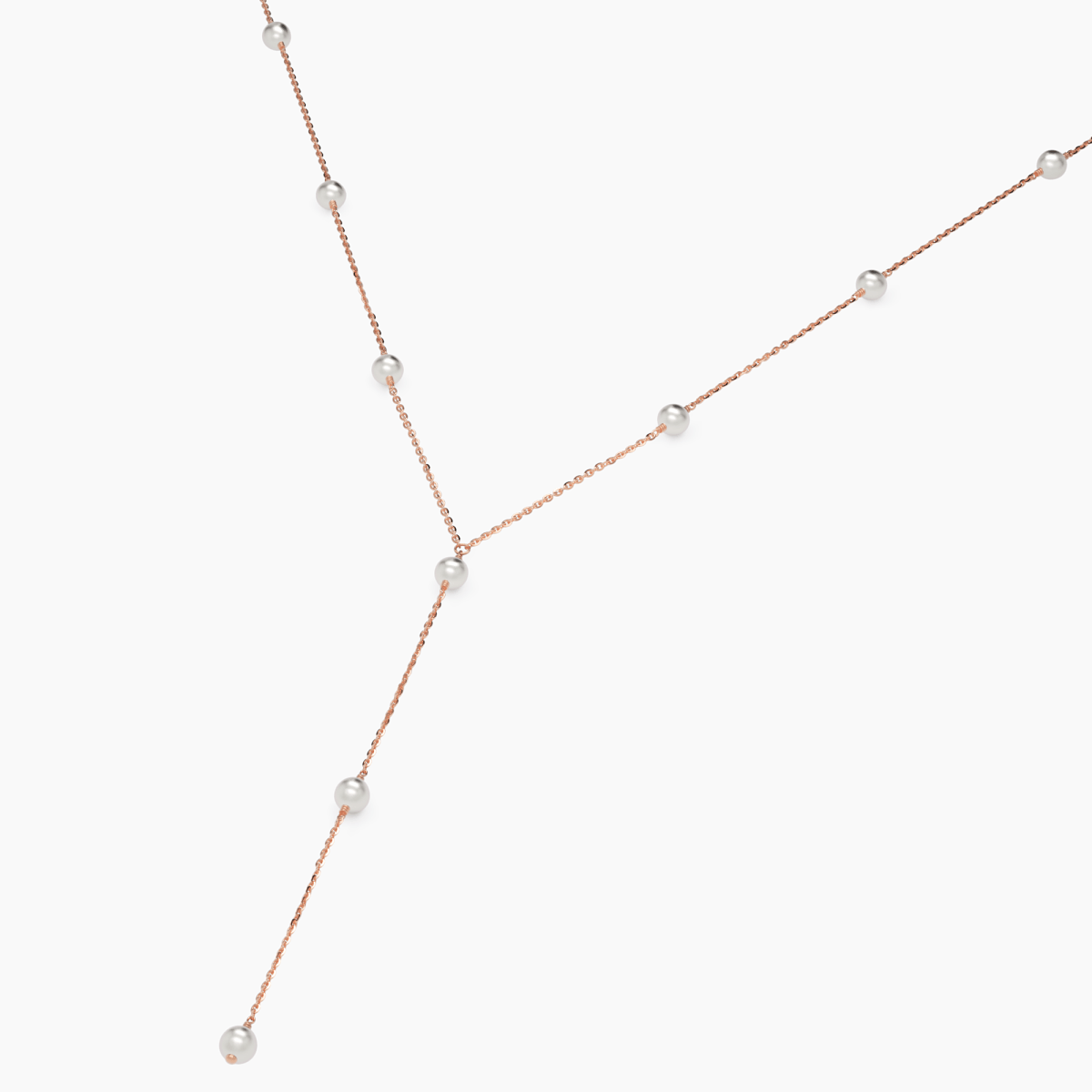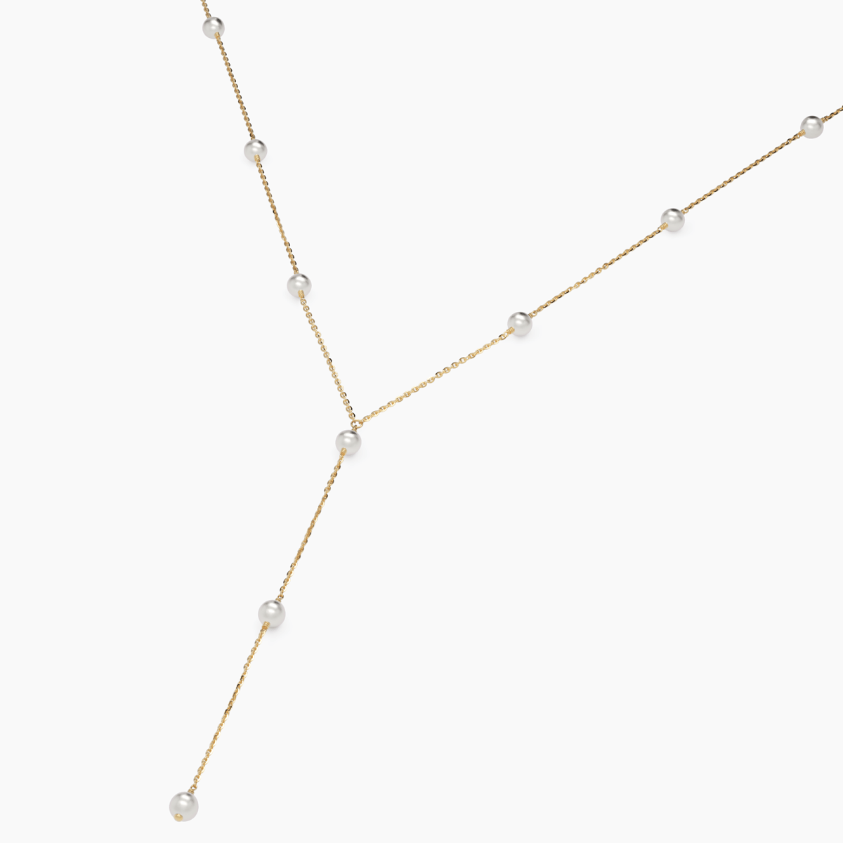 Nine white freshwater pearls set across a timeless lariat design made with14k yellow gold for guaranteed quality. A fine jewelry classic reimagined with modern appeal in mind, perfect for both daily attire and special occasions.