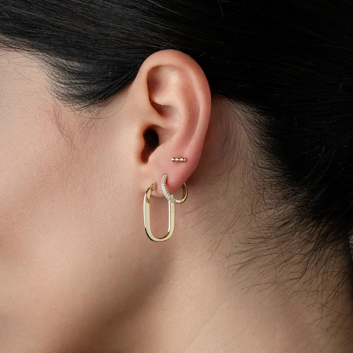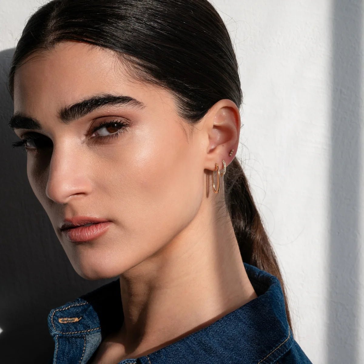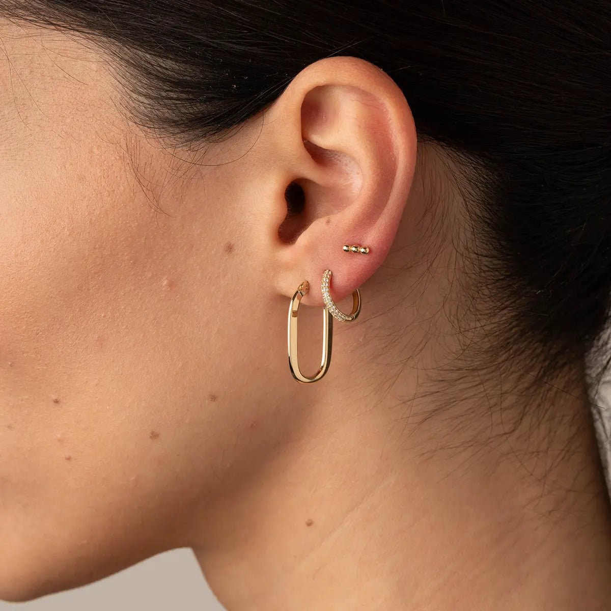Sleek in texture and lightweight in feel, this exquisite pair of Elongated Oval Hoop Earrings blends timeless charm with contemporary flair. Crafted with pure 14k yellow gold, their elongated, huggie-hoop style is hinged for a secure and comfortable fit.
