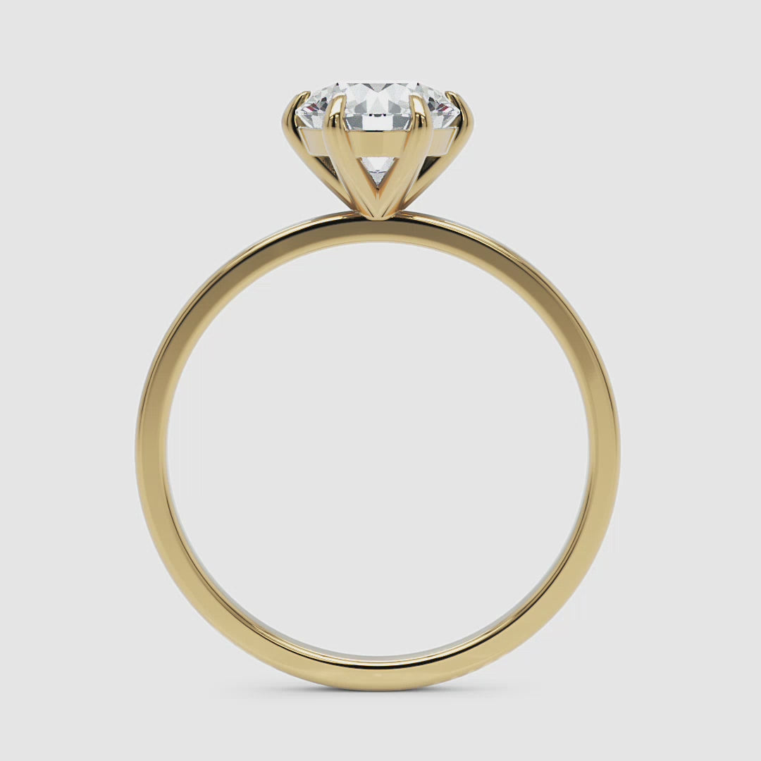 A timeless symbol of enduring beauty and love, designed to seal your forever connection. Featuring a sleek 18k solid gold band and six prongs that secure the round diamond at the center, allowing light to illuminate its brilliance and reflect the bond you share.