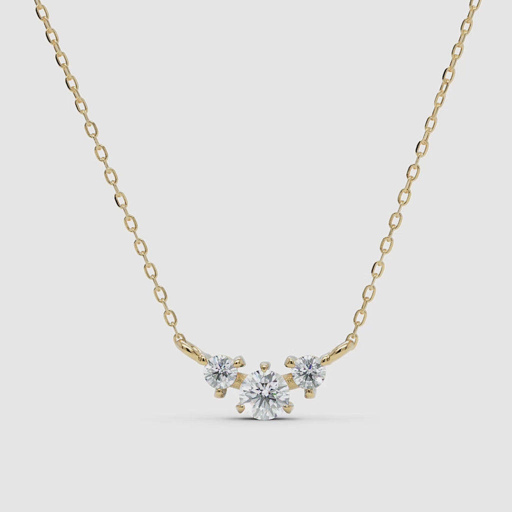 A brilliant pendant that ensembles three shimmering diamonds, highlighted in a 14k yellow gold prong setting for irresistible shine. Minimal and understated, it will remain classic for years and generations.