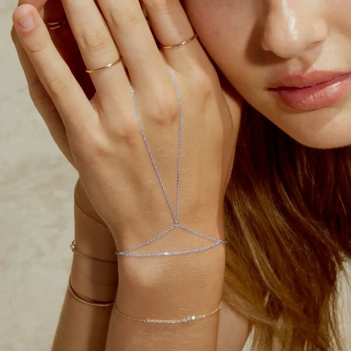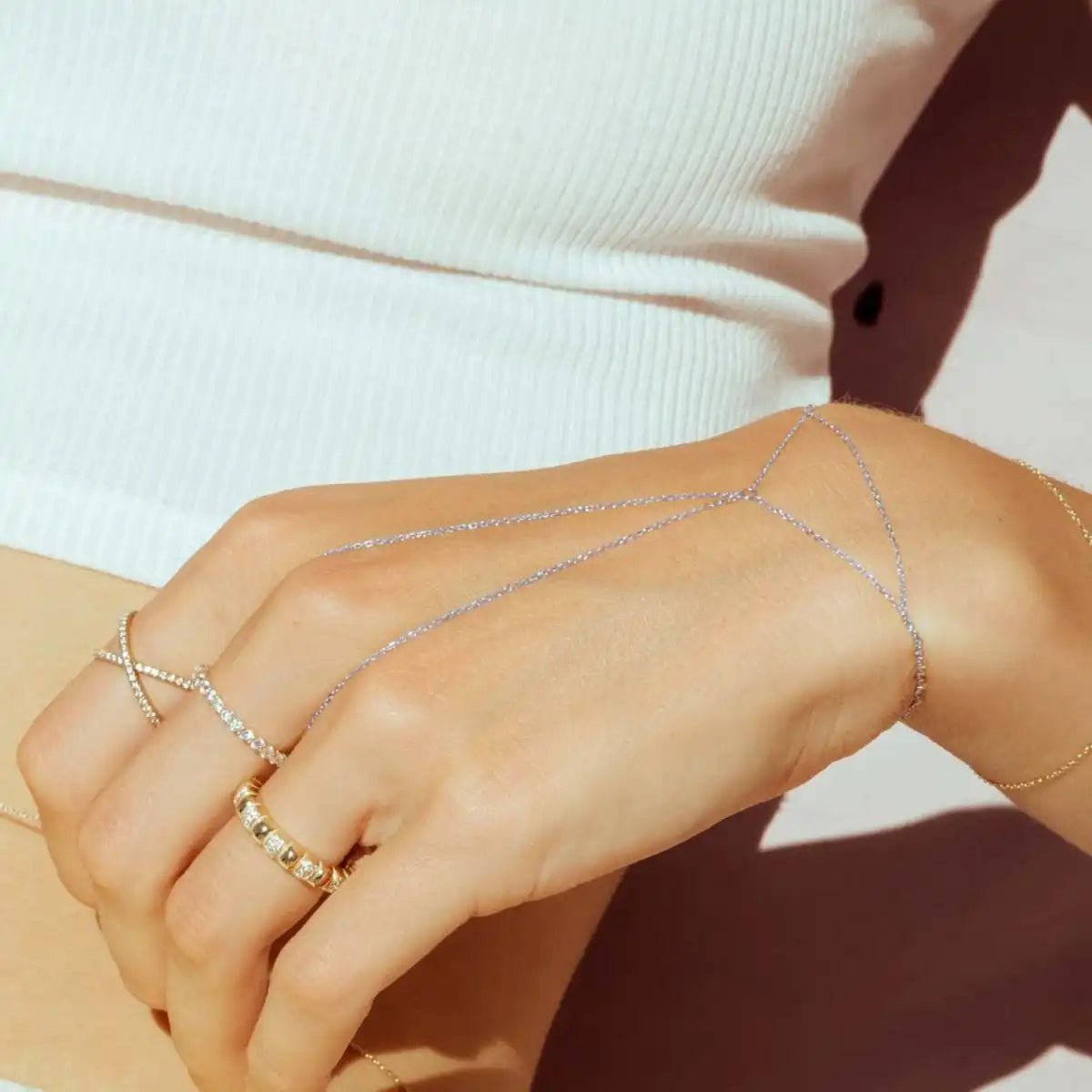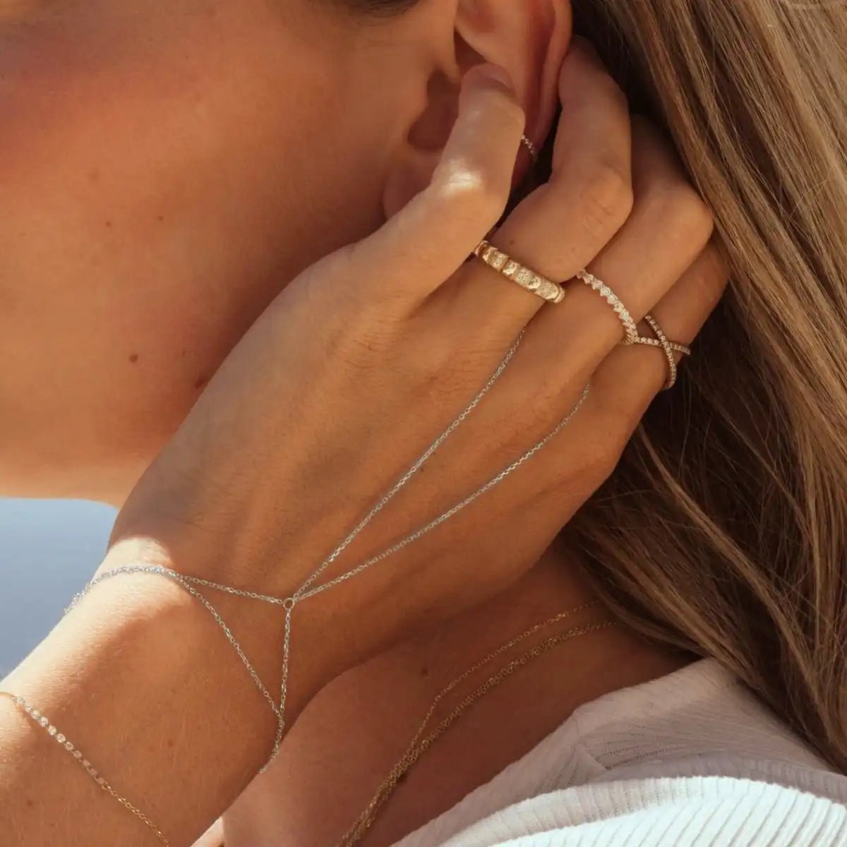 Finely crafted with solid 14k white gold in our Athens studio, this elegant Ring Chain Gold Bracelet is made to last. Its minimalist design adds understated sophistication and charm, while the rich white hue adds dashes of sparkle as it gracefully wraps around your wrist.
