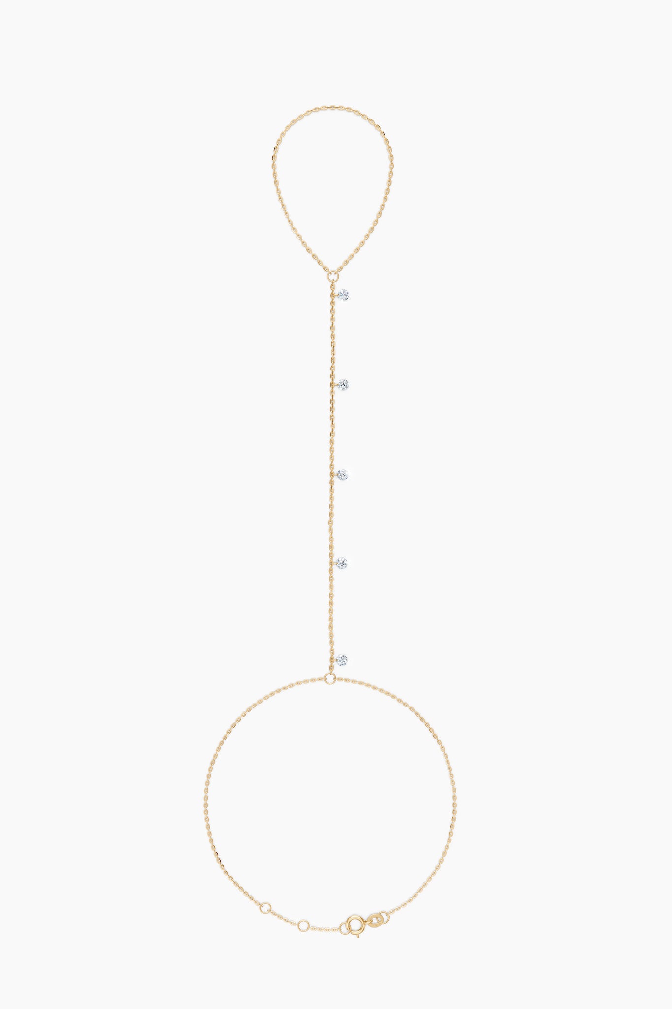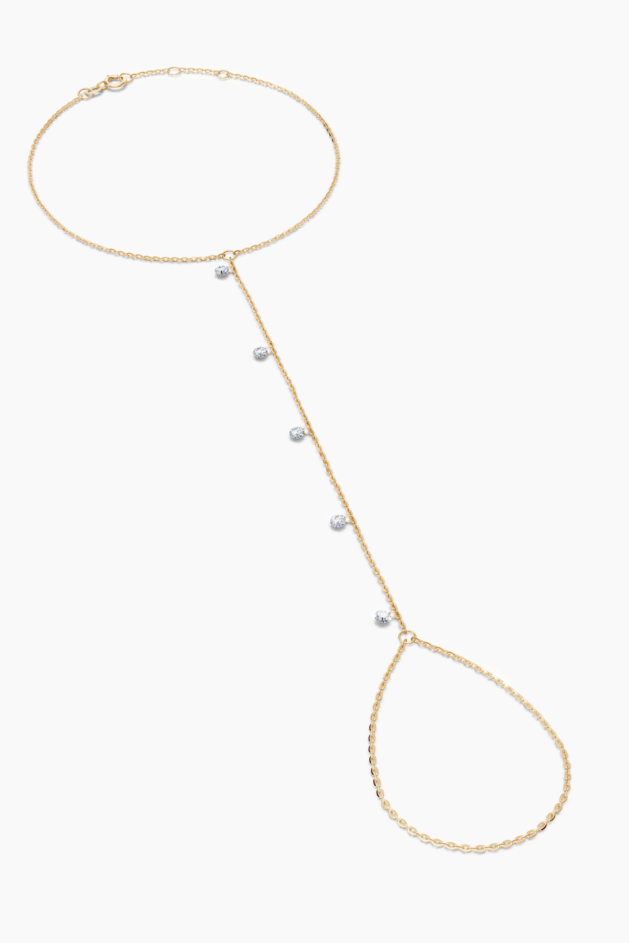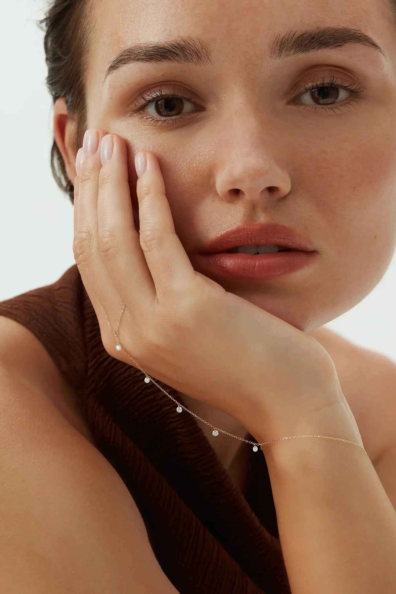 Finely drilled diamonds dangle softly from a lustrous 14k yellow gold chain for a wrist piece that makes a statement while being minimalist. Designed to feel sturdy and versatile for your everyday, whether styled solo or alongside your favorite chains and diamonds.