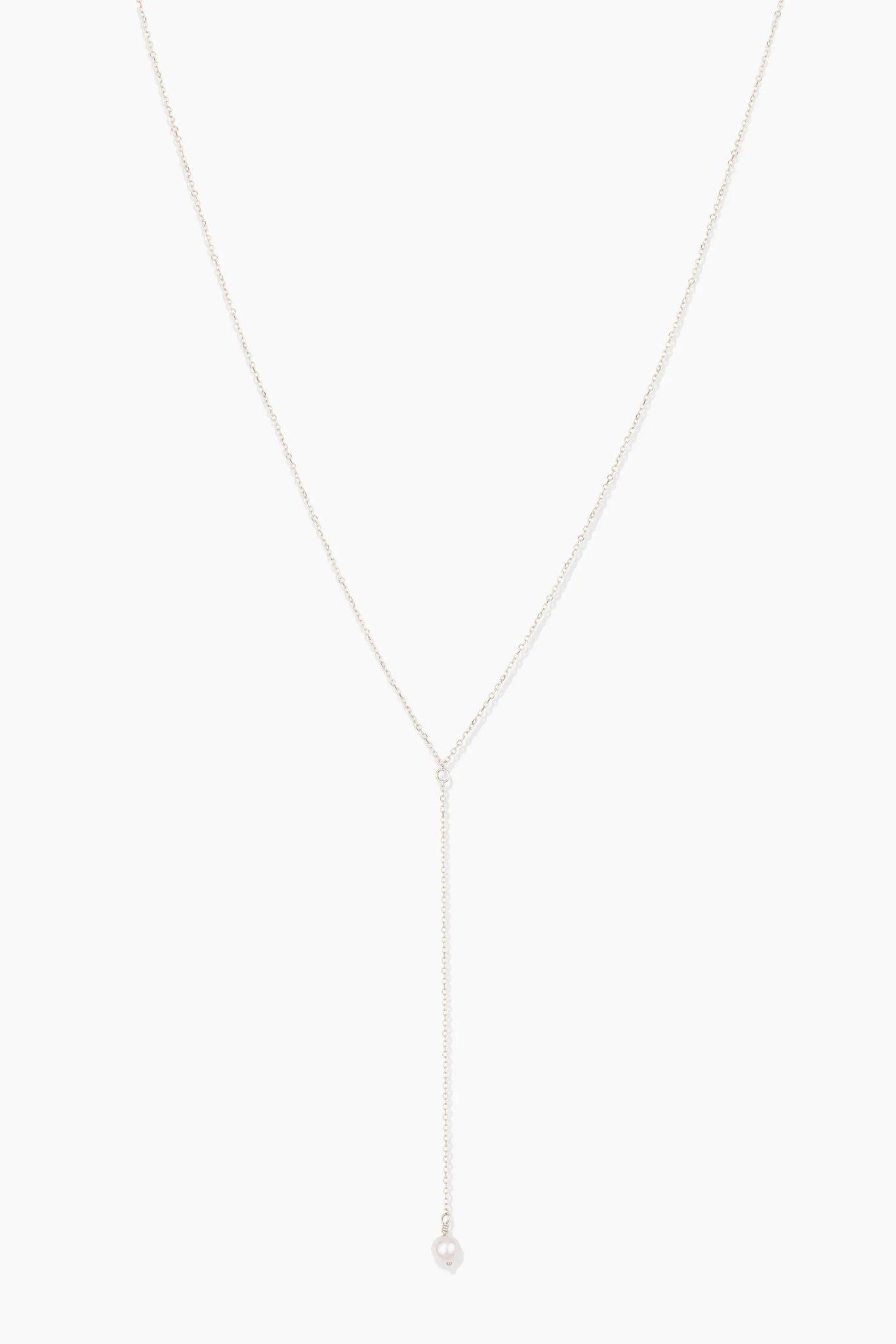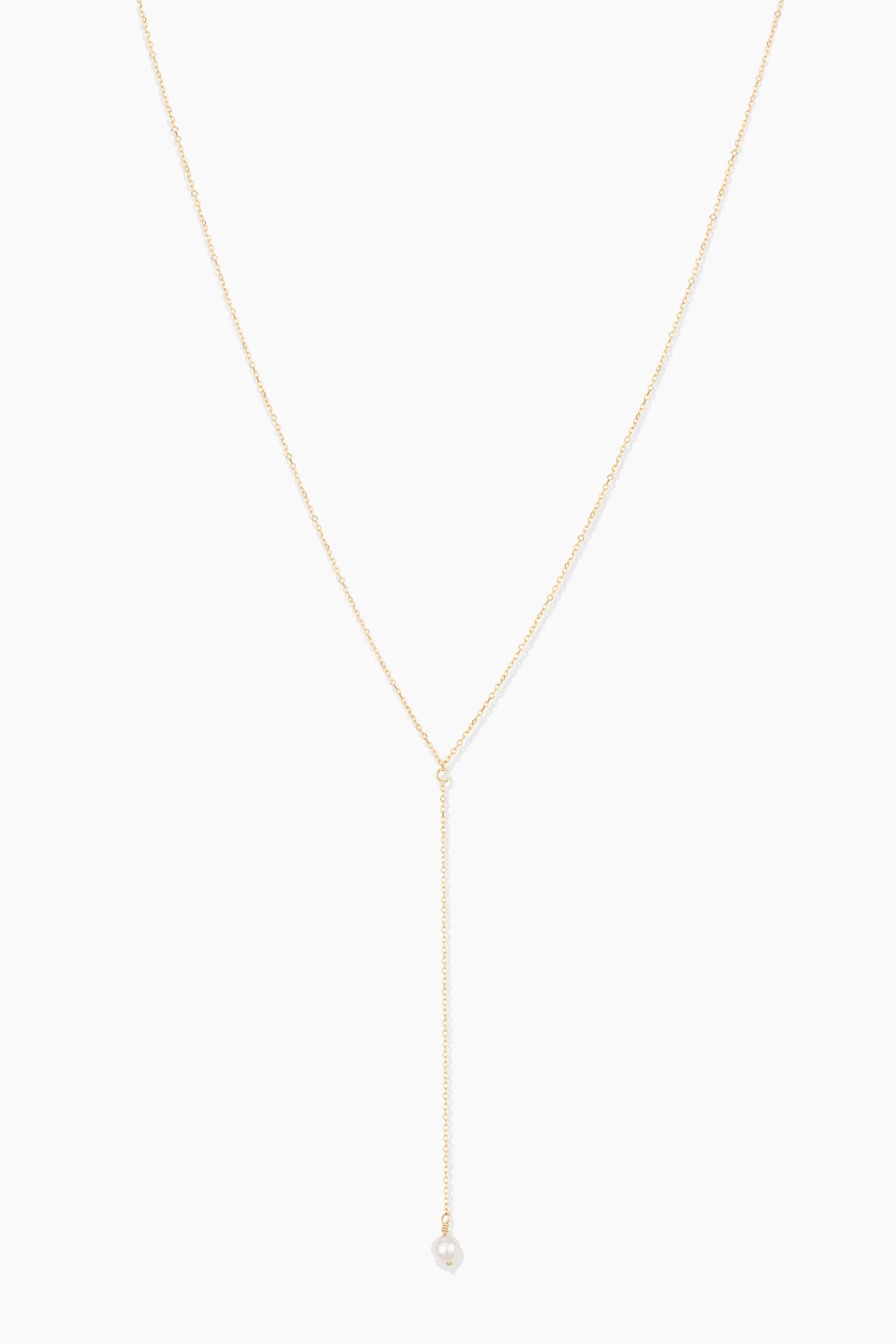 A single pearl suspends from a classic lariat style, handcrafted in solid 14k yellow gold to stand everyday wear while being effortlessly minimal. Let it peek as a dainty, standalone statement or a refined stack over open shirts, blazers, and formal attire.