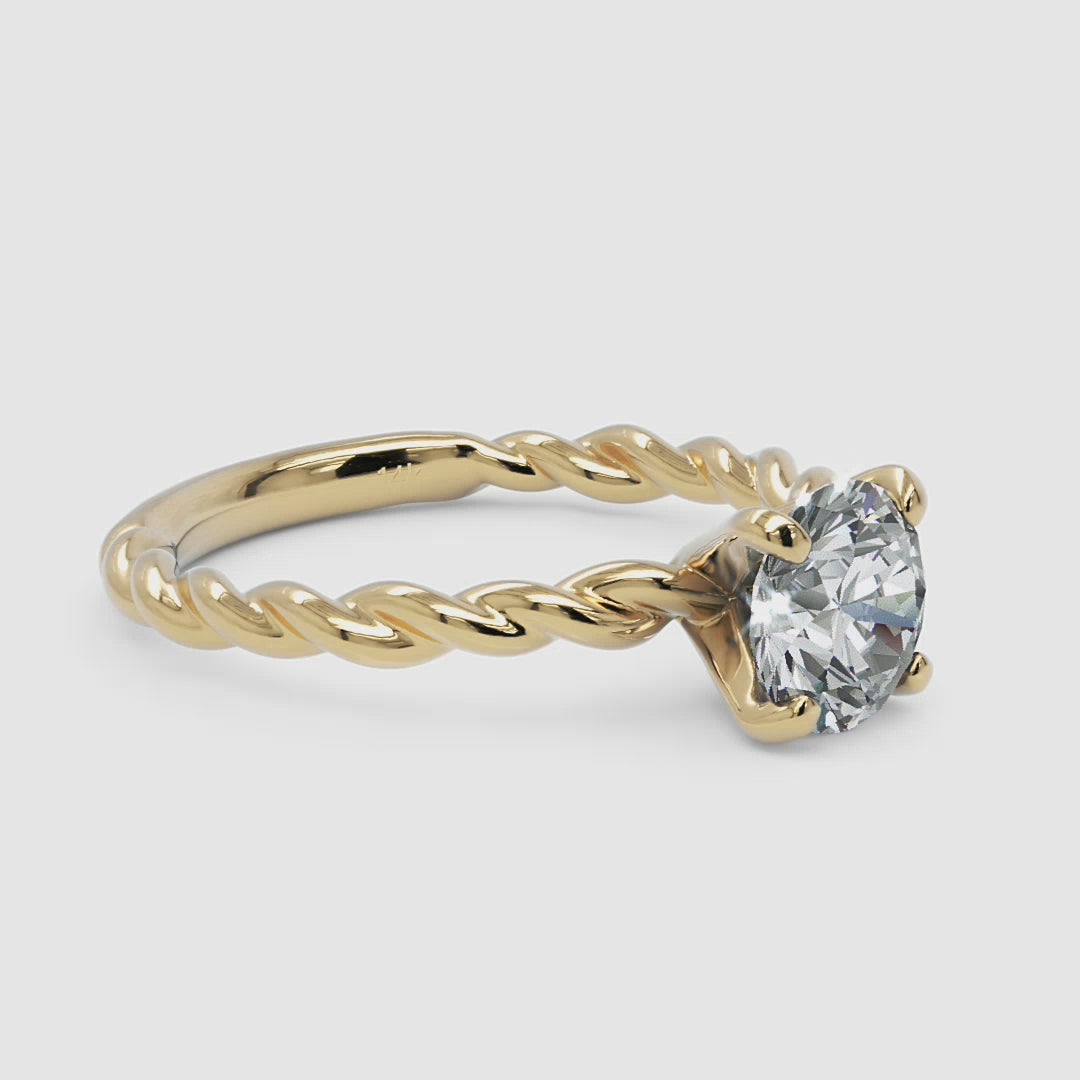 Classic with a modern appeal, this Twisted Band Diamond Engagement Ring is crafted to blend refined charm with contemporary elegance. A brilliant round-cut diamond is secured atop a twisted band, handmade with solid 18k gold and destined to honor your special moment.