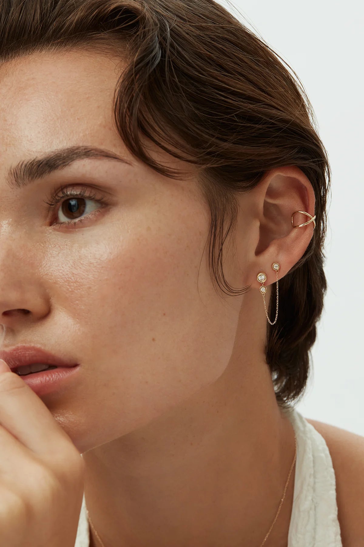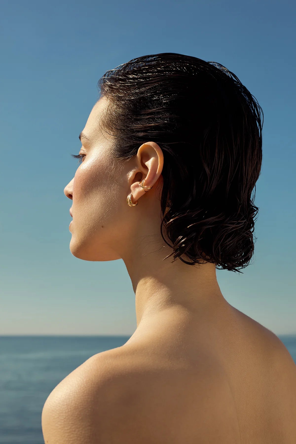 Minimalist, sleek, and ultra-minimal, the Aeno Ear Cuff wraps with grace around your ear, hugging it in place. A unique X shape that adds dimension and personality, with no extra piercings needed. Handmade with pure 14k yellow gold to last.