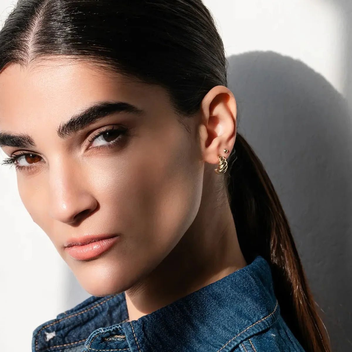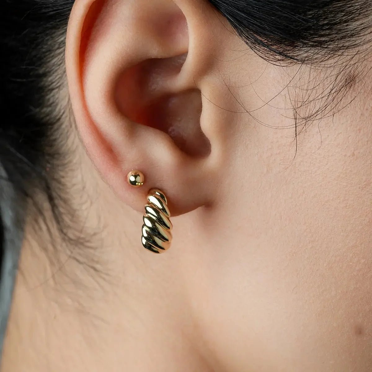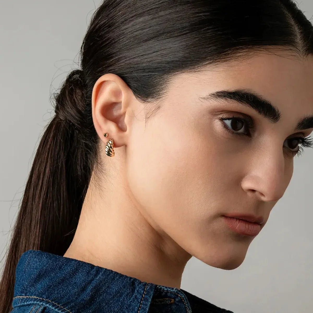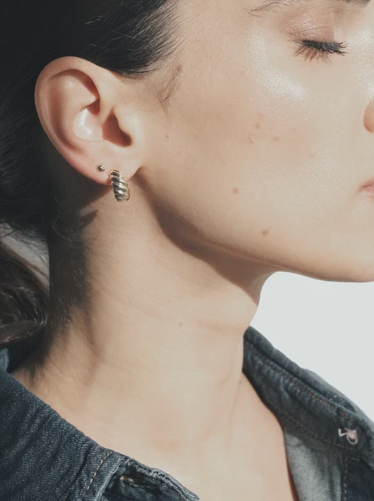 A chunky, twisted hoop showcasing a croissant motif and hollow design to feel lightweight and comfortable against your earlobes. The perfect everyday piece for elevating your usual stacks, pairing with plain studs and classic hoops—handmade with solid 14k gold to resist tarnish.