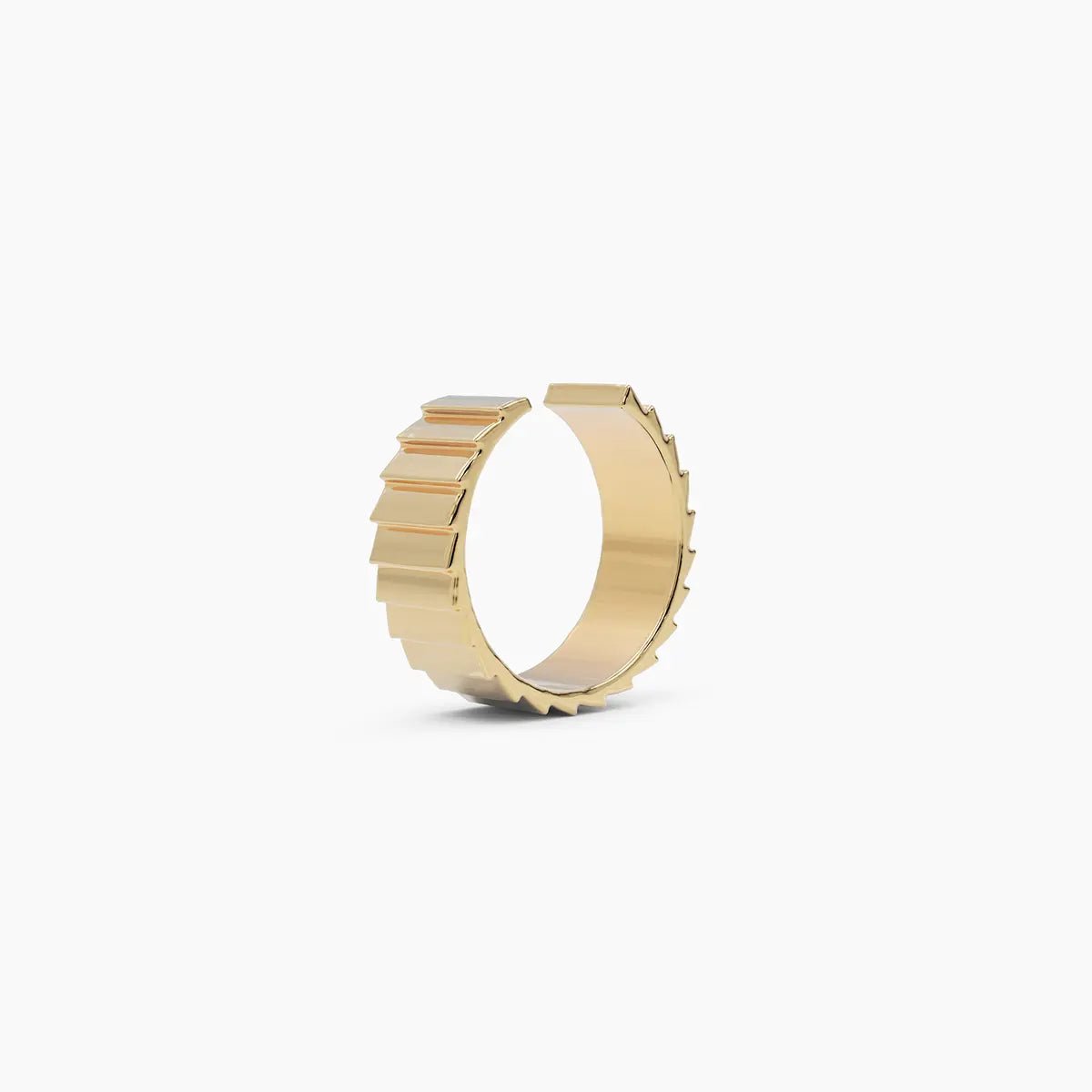 More than cuff earrings, this Chunky Ribbed Ear Cuff is meant to add texture and attitude, especially when paired with other earring huggies or studs. Handmade with 14k solid yellow gold, its intriguing ribbed pattern makes a bold statement, without having to get any extra piercings.