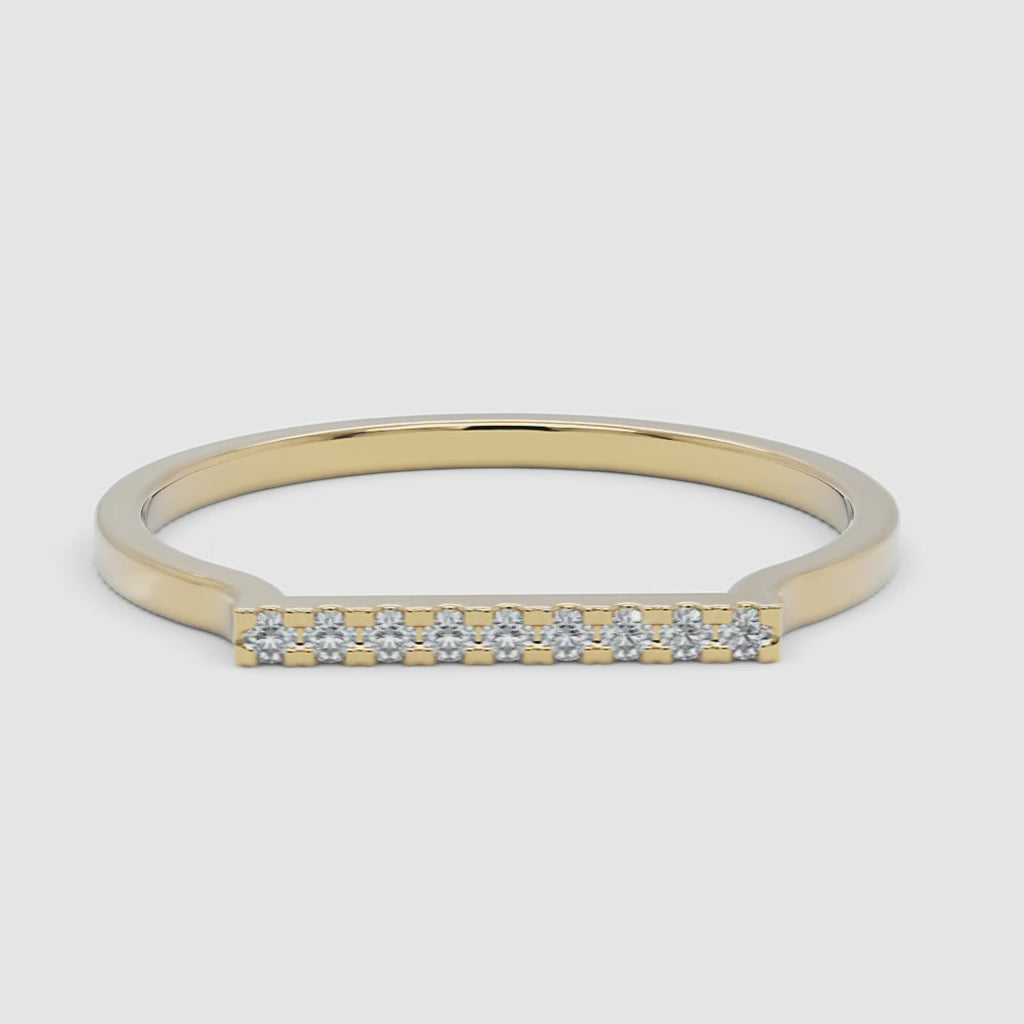 Handmade with 14k solid gold to withstand years of wear, the Diamond Bar Ring is a mini keepsake you'll cherish every day and for life. The sleek, delicate band features a shimmering line studded with nine tiny diamonds, adding subtlety and brilliance to your looks.