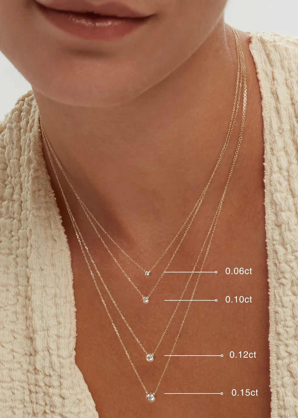 An ultimately classic Diamond Bezel Necklace for simplicity and understated elegance. Handmade with solid 14k yellow gold in our Athens atelier, it features a single round diamond set in a chic bezel. Whether given out as a thoughtful piece or simply kept on for yourself, its pure craftsmanship will always serve its purpose.