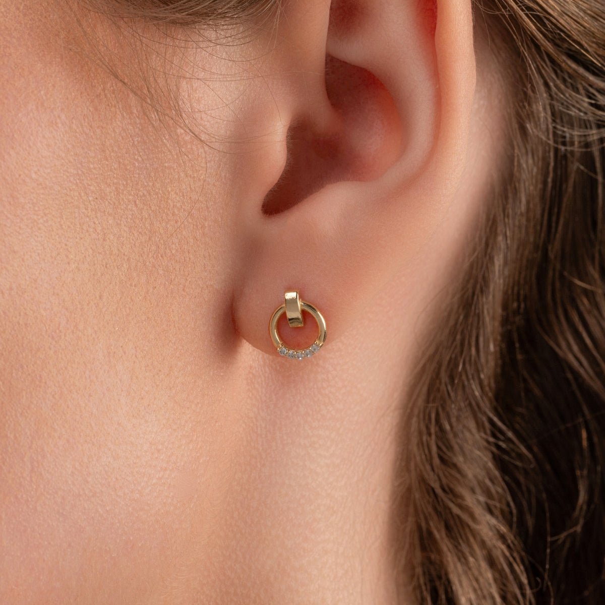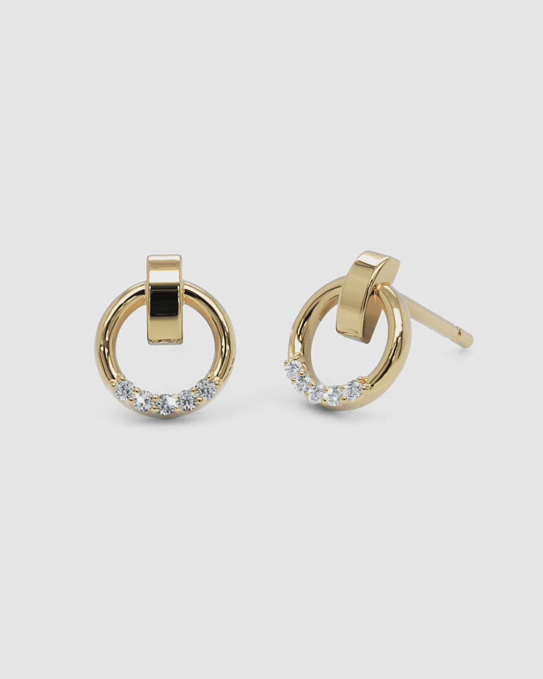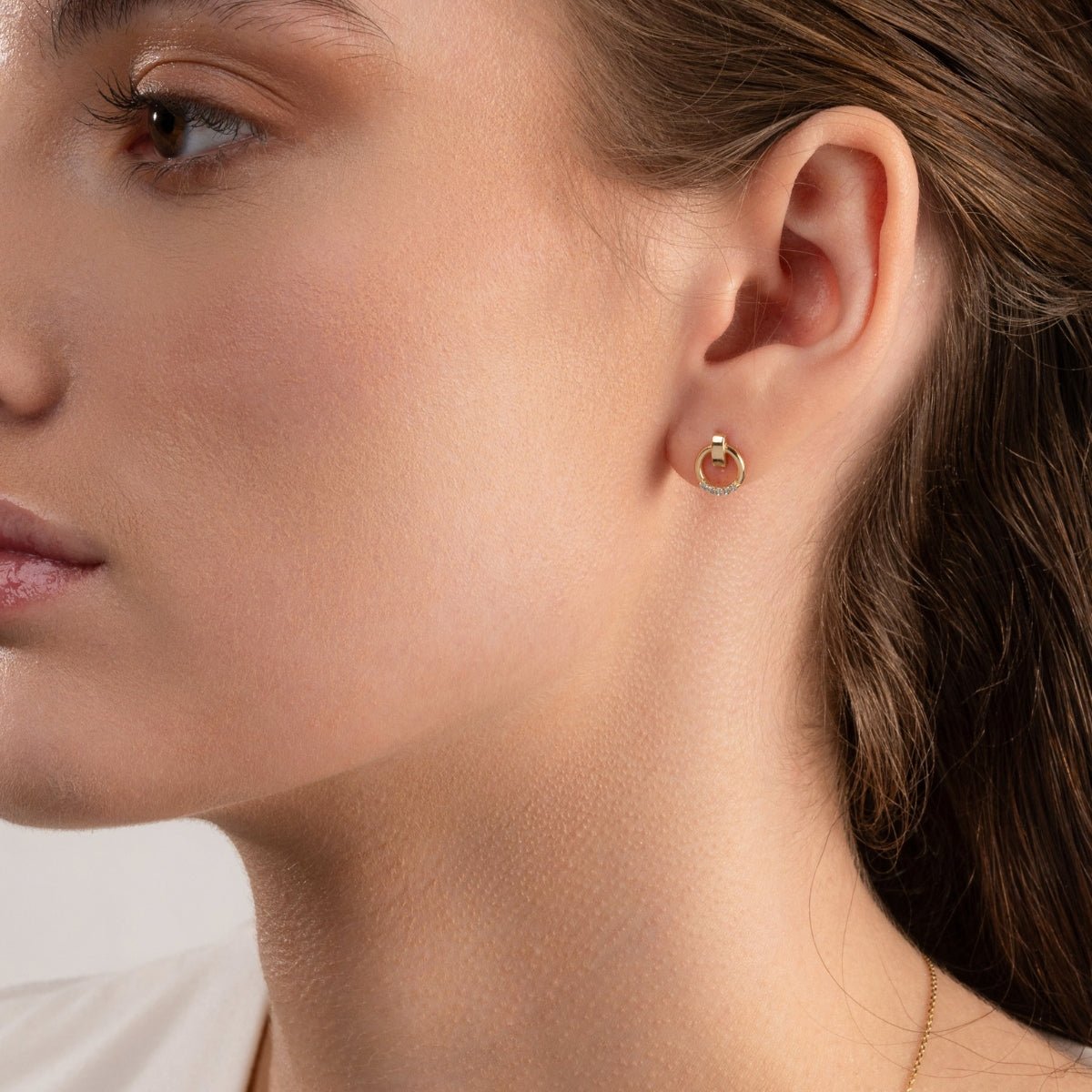 Minimal yet shimmering, this classic duo of Diamond Circle Stud Earrings can elevate any attire, regardless of style or occasion. Handmade with pure 14k gold and encrusted with pavé diamonds, they radiate sophistication and understated elegance.