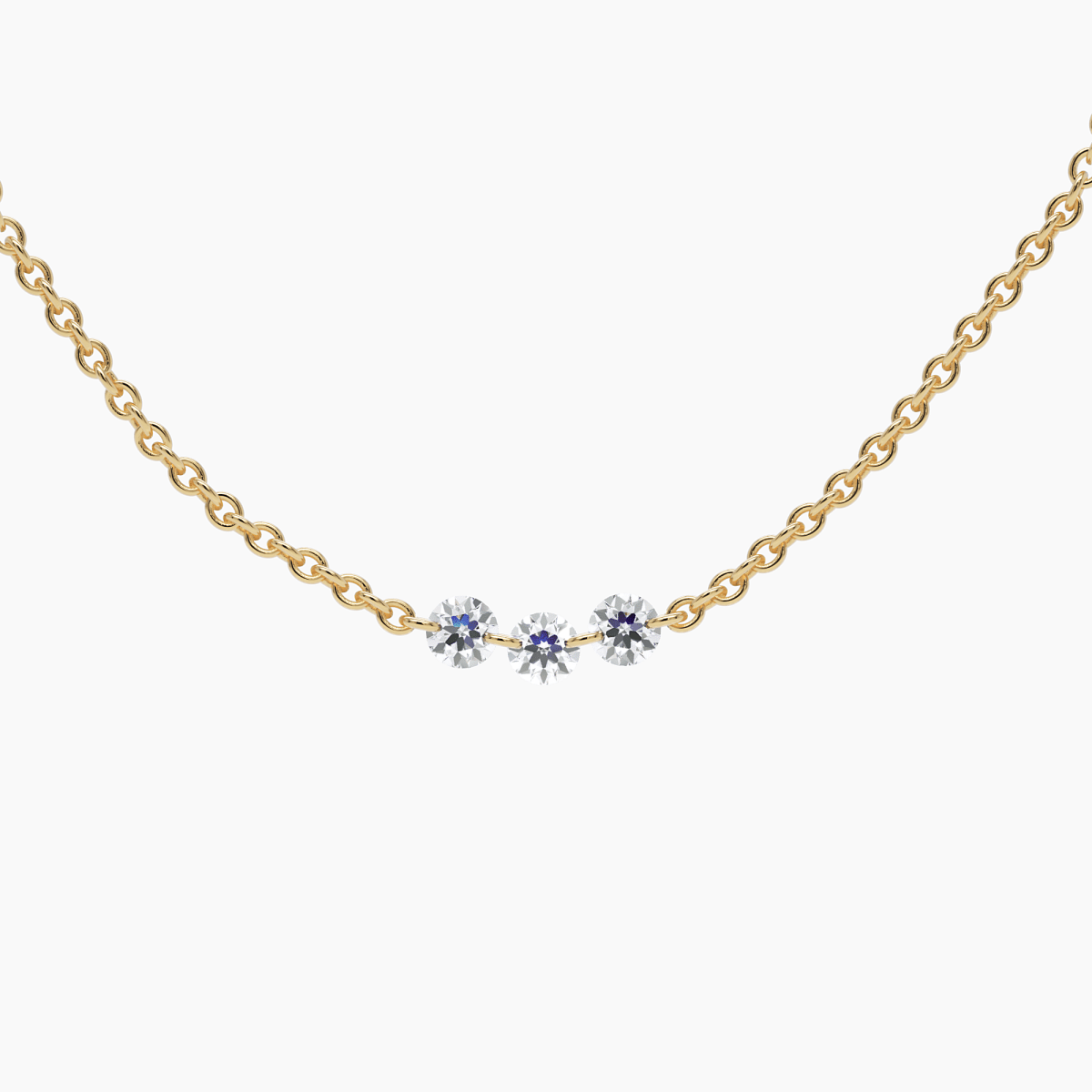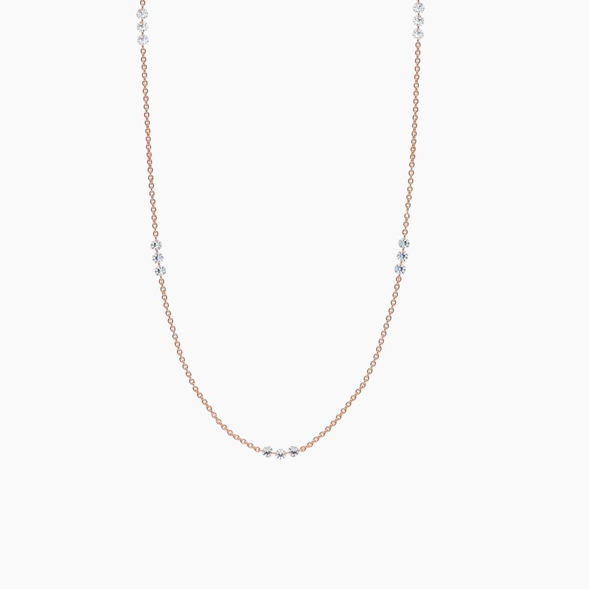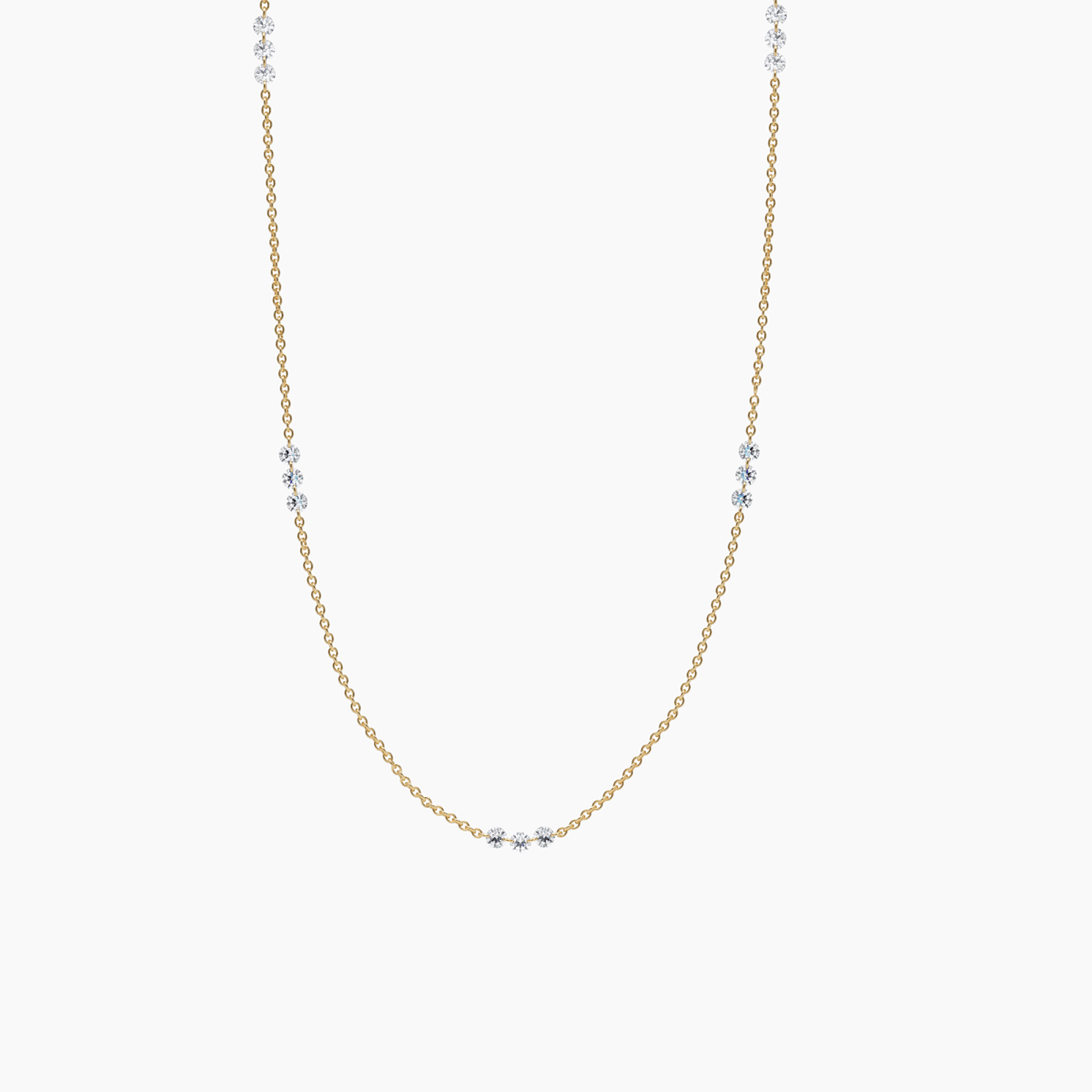 A subtle yet radiant touch for any look: our Drilled Diamond Station Necklace. Shimmering drilled diamonds, arranged in sets of three, adorn a fine 14k white gold cable chain. Perfect for complementing your go-to stacks without overpowering them.