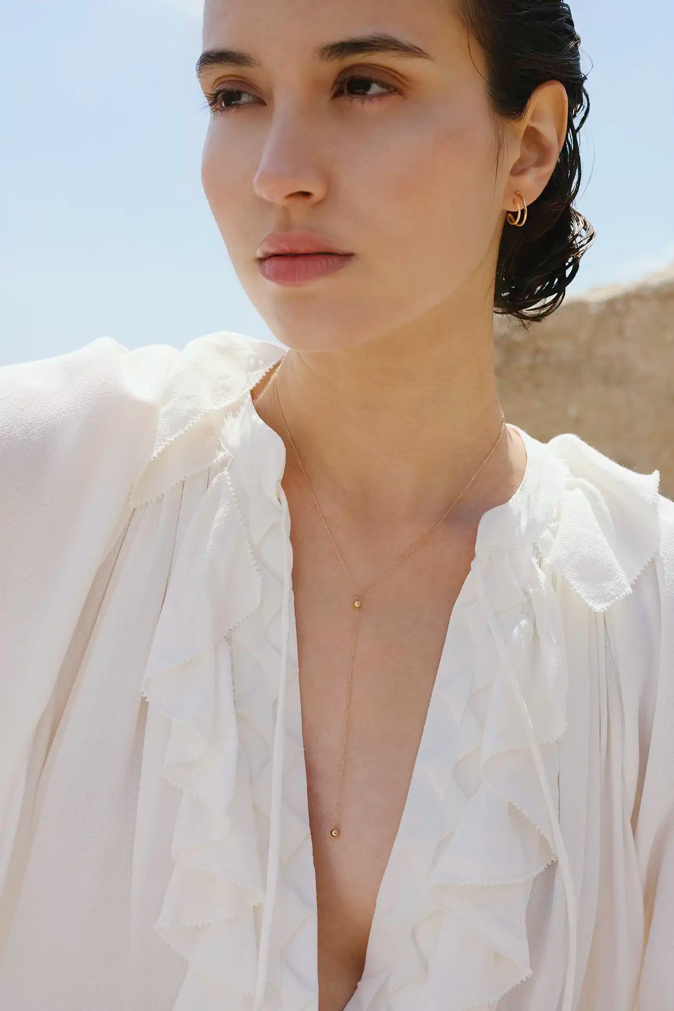 Two 14k white gold hoops — one plain and a second one accented with dainty diamonds — twist together for an earring style you'll never take off. Whether you wear it solo or let it complement your daily stacks, it will remain a staple piece for years and seasons ahead.