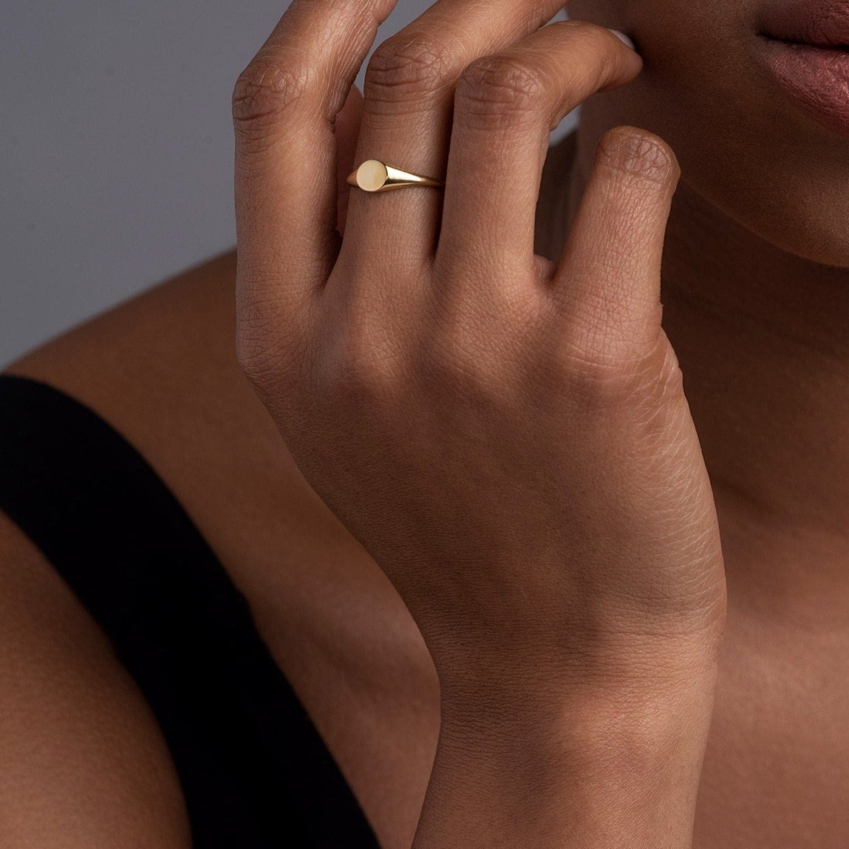 A classic, minimalist signet ring, destined to carry a bit of your personal narrative. A 14k solid gold canvas to engrave anything that feels special to you: an initial, a personal milestone, a date. Make this a timeless gift for yourself or a loved one for any occasion worth commemorating.