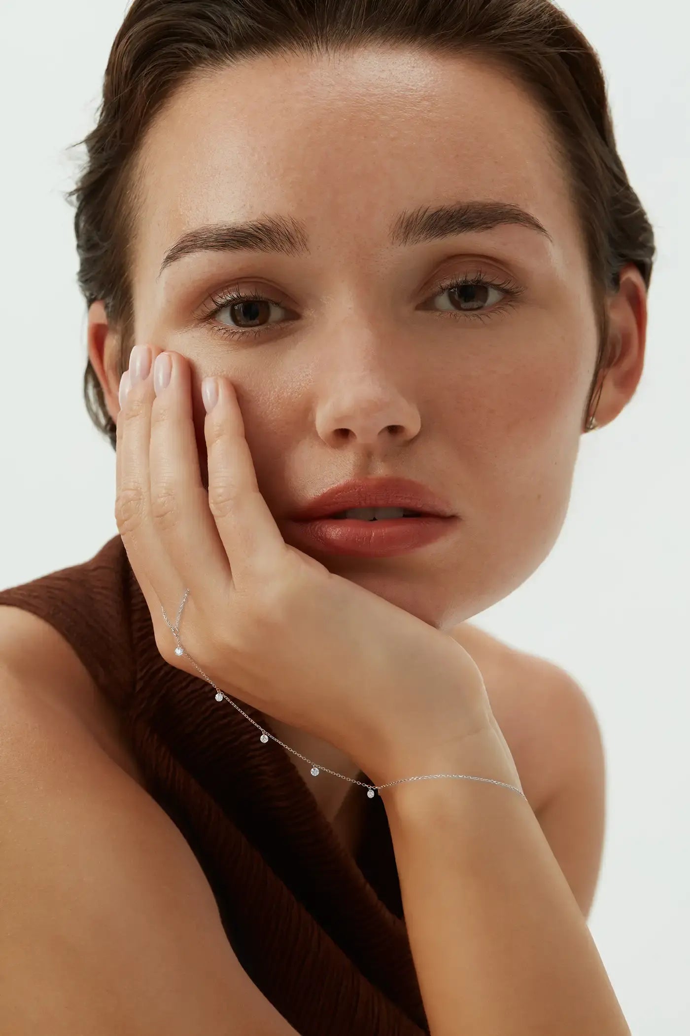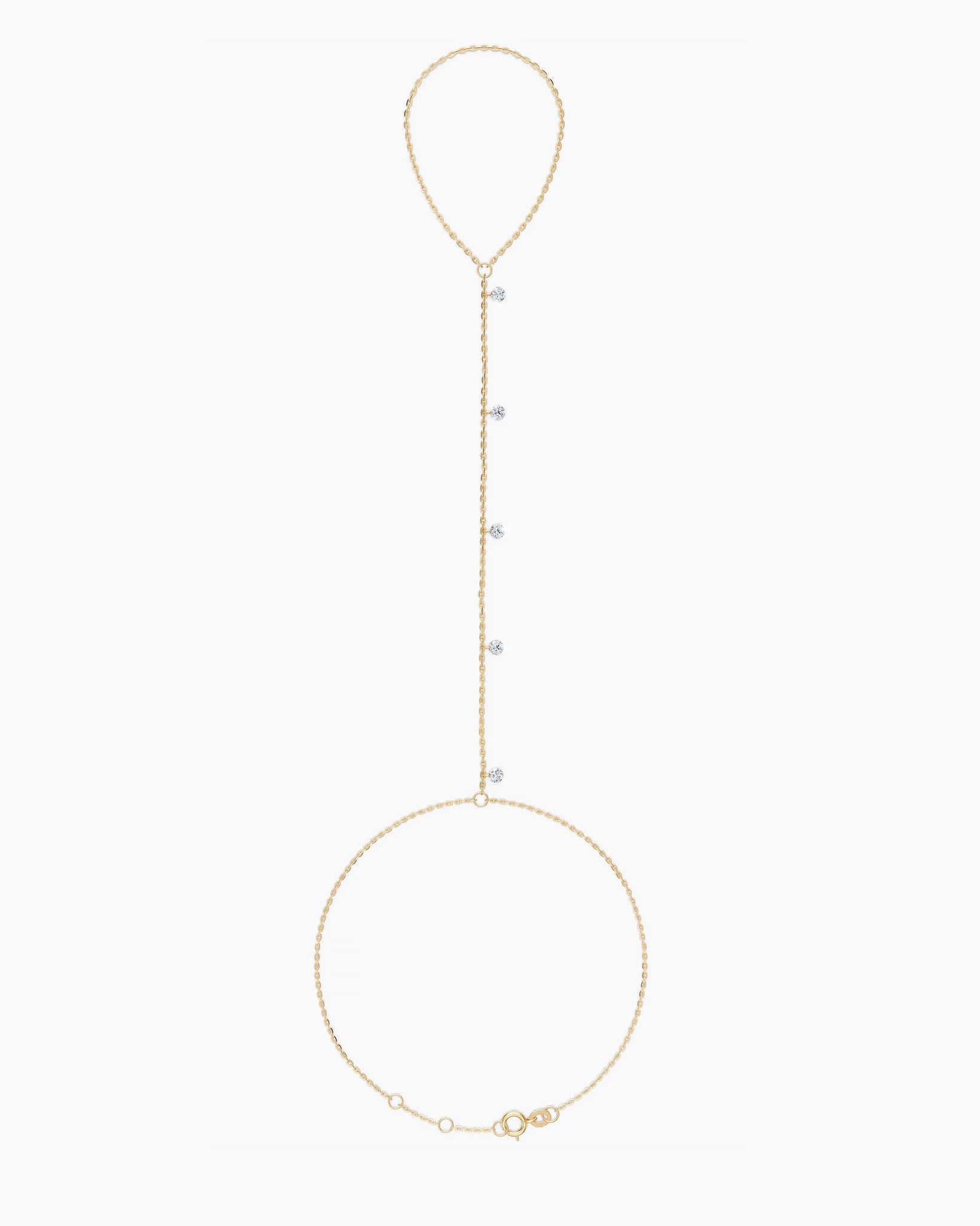 Finely drilled diamonds dangle softly from a lustrous 14k yellow gold chain for a wrist piece that makes a statement while being minimalist. Designed to feel sturdy and versatile for your everyday, whether styled solo or alongside your favorite chains and diamonds.