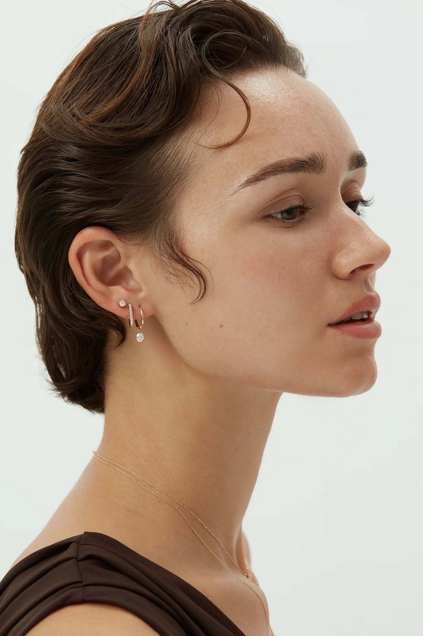 An impressive 0.50-carat diamond appears to float underneath your earlobe as it gracefully hangs from a lustrous 14k gold hoop. This classic yet elevated pair of solid gold hoops will lend shine to any stack and look — for years and generations ahead.