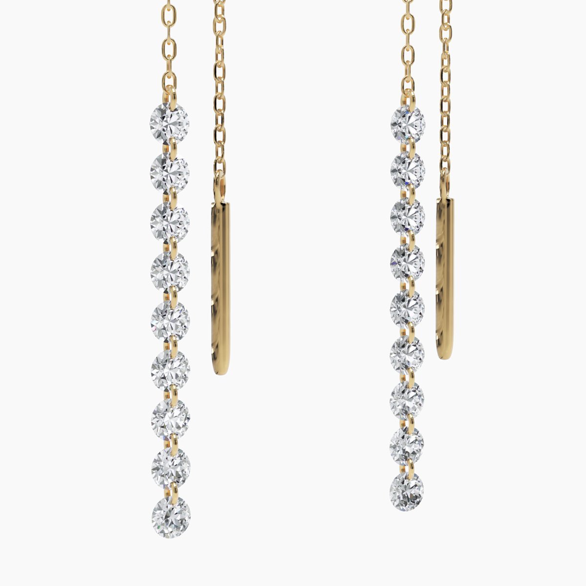 Remarkably shimmering and minimal, this one-of-a-kind pair of Nude Diamond Threader Earrings is designed to make a scintillating statement. The lustrous chain is handmade with 14k white gold and then set with finely drilled diamonds that allow the light to shine from every angle.