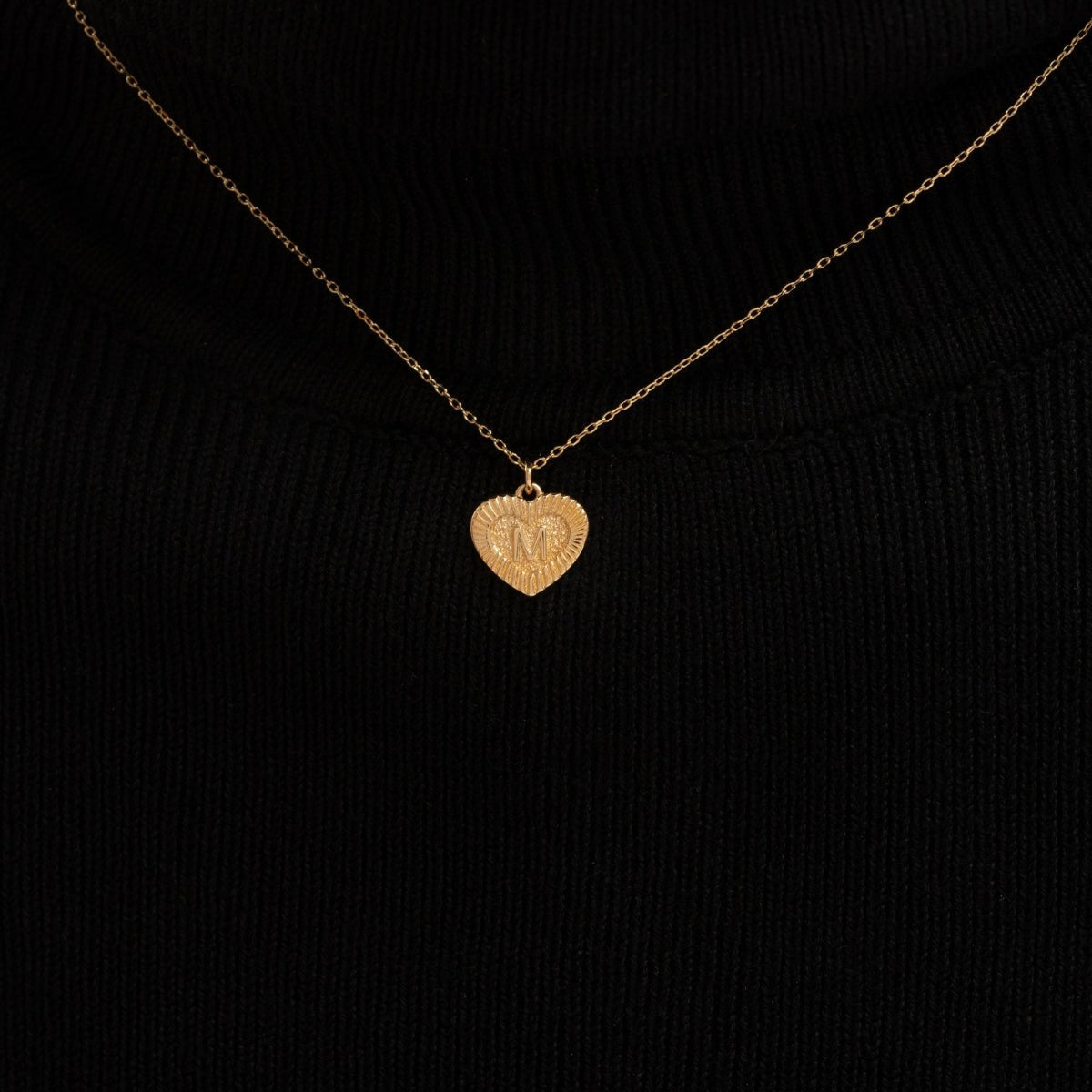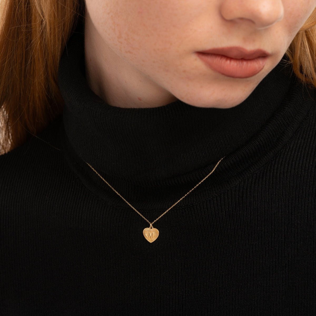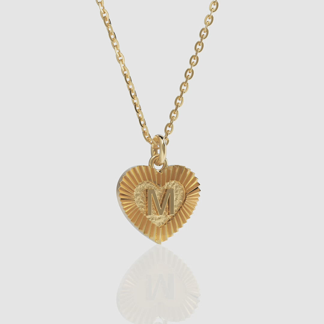 A dainty gold heart with a unique ribbed texture, engravable with the letter you always want to keep close. Make it an ultimately personalized gift for yourself or your favorite person, honoring any occasion. Crafted in solid 14k yellow gold for lifelong cherishing.