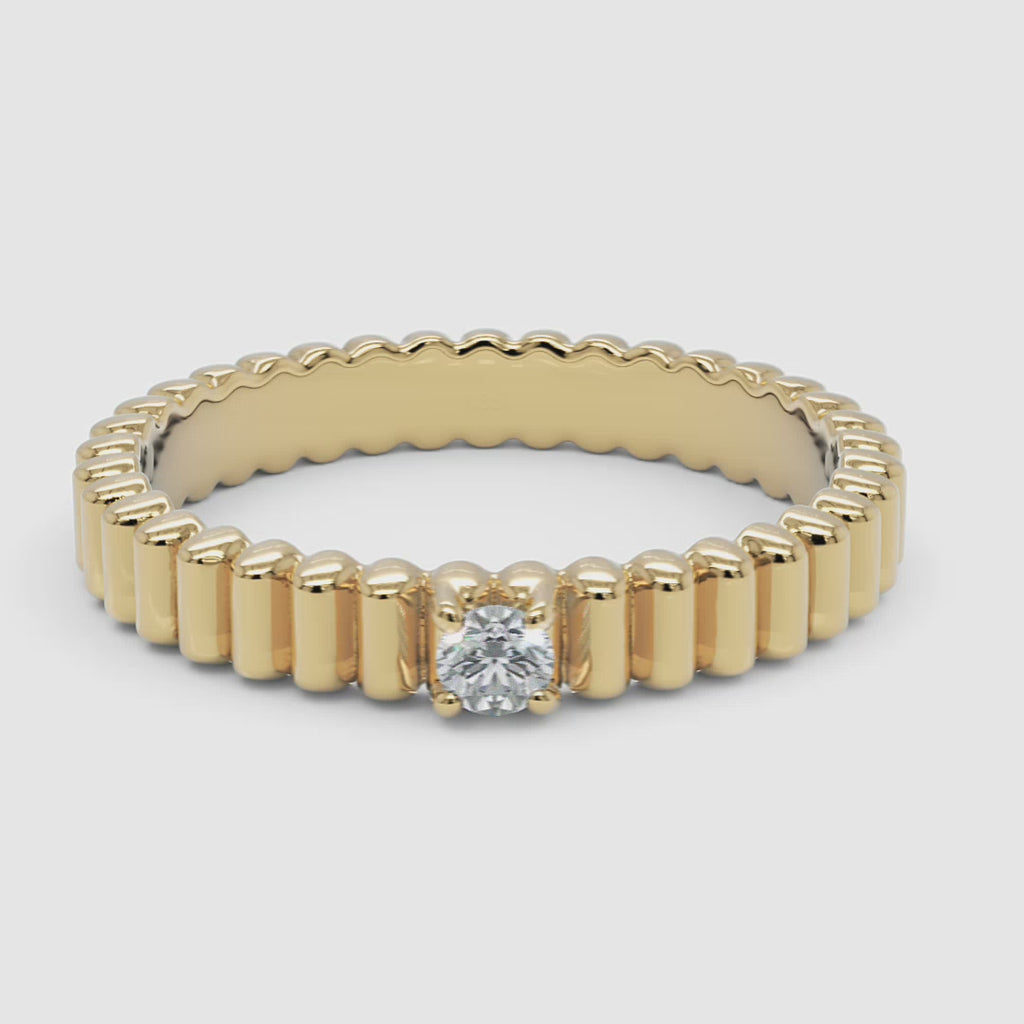 A 14k gold Ribbed Solitaire Diamond Ring that suits any occasion with its eye-catching elegance. The captivating ribbed design sets this piece apart from ordinary jewelry, whether it's an engagement band, anniversary ring, or simply a gift to yourself.